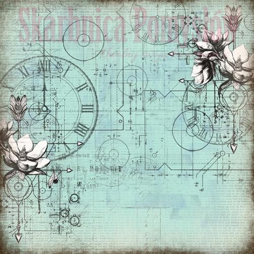 Dwustronny papier do scrapbookingu zaprojektowany przez Olgę Heldwein. Kolekcja "Vintage moments".