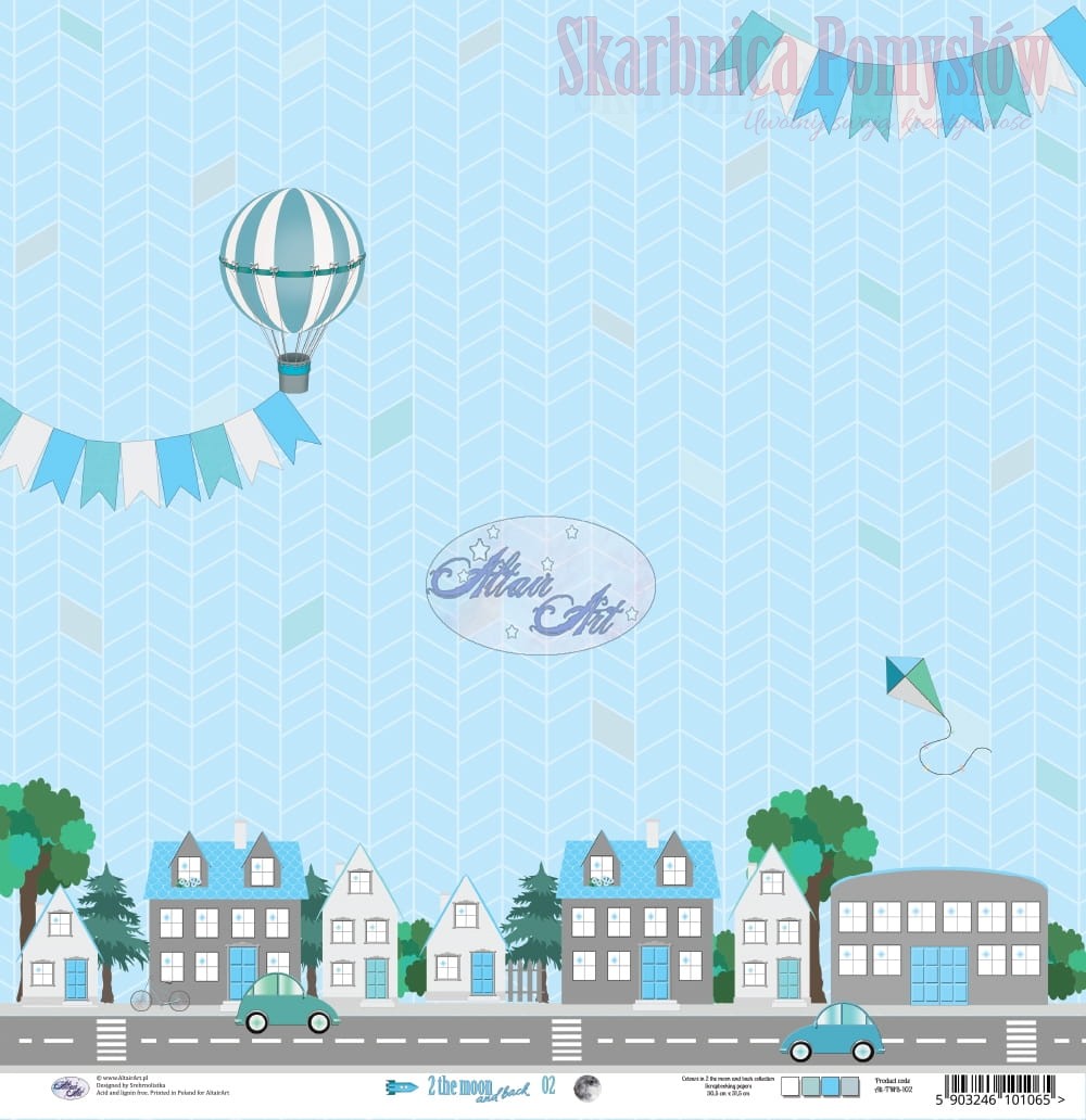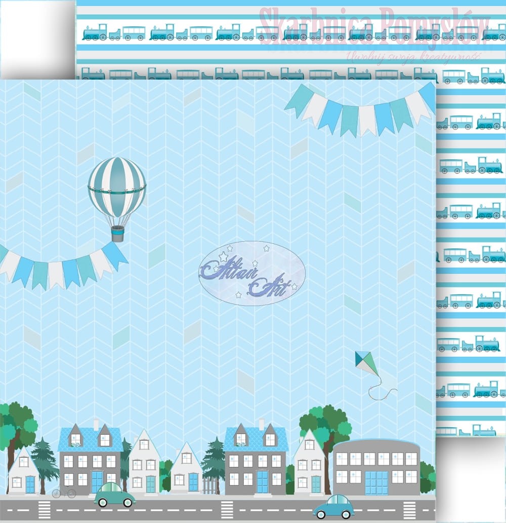 Wysokiej jakości dwustronny papier ozdobny do scrapbookingu o wymiarach 15 cm x 15 cm i gramaturze 250 gsm nadrukowany w wesołe wzory, idealne do dziecięcych prac. Sprawdzą się przy tworzeniu kartek i chłopięcych albumów. Samochodziki, kolejna, balon i latawiec oraz inne zabawki zabiorą nas w świat dziecięcej zabawy i beztroski.