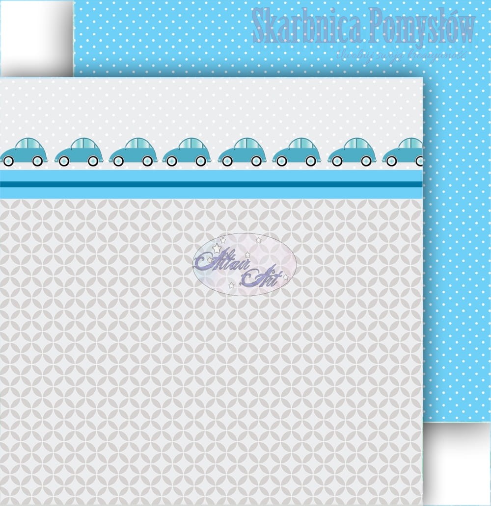 Wysokiej jakości dwustronny papier ozdobny do scrapbookingu o wymiarach 15 cm x 15 cm i gramaturze 250 gsm nadrukowany w wesołe wzory, idealne do dziecięcych prac. Sprawdzą się przy tworzeniu kartek i chłopięcych albumów. Samochodziki, kolejna, balon i latawiec oraz inne zabawki zabiorą nas w świat dziecięcej zabawy i beztroski.