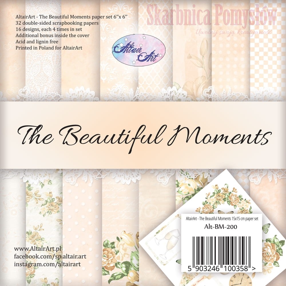 AltairArt - The Beautiful Moments - zestaw 32 papierów do scrapbookingu 15 cm x 15 cm