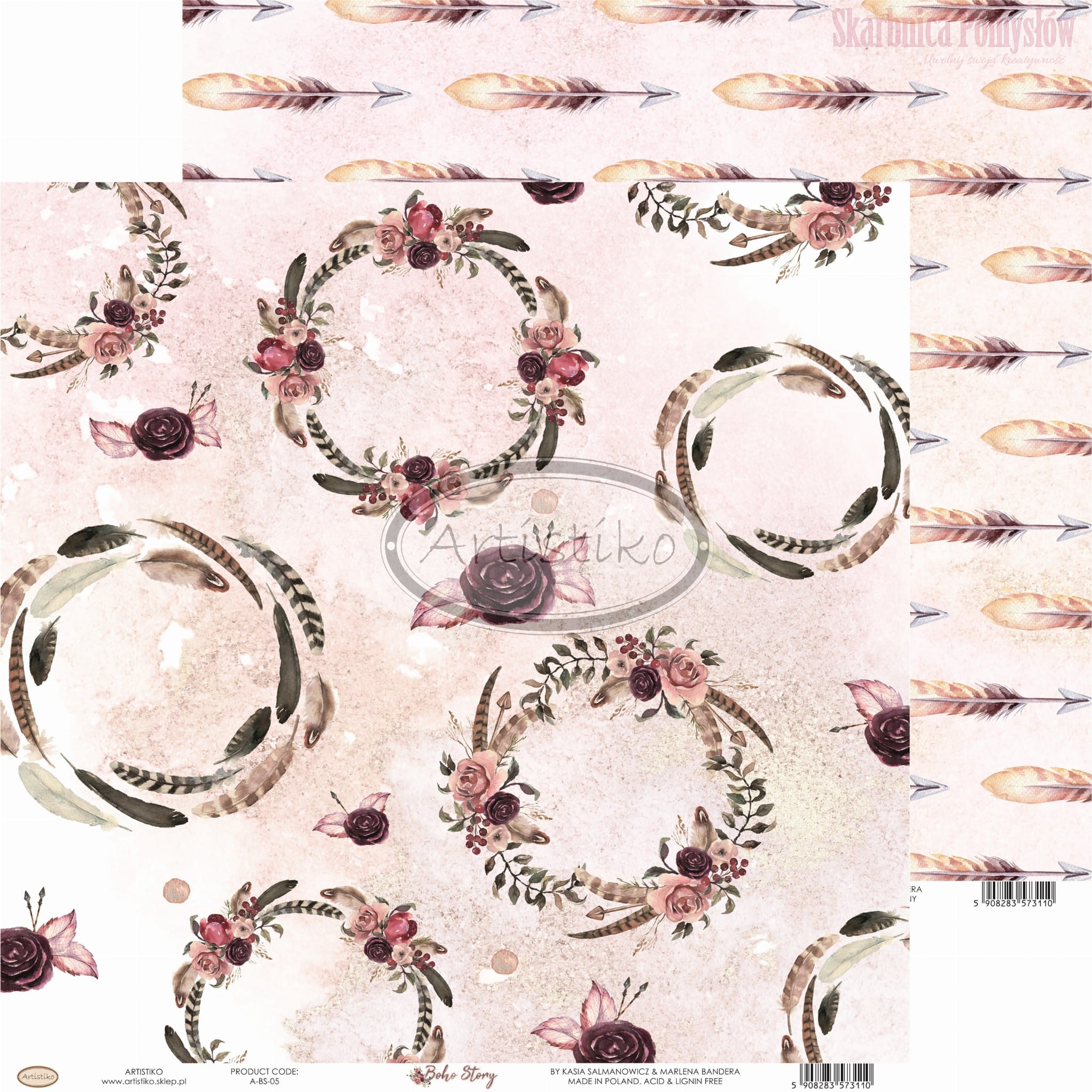 Dwustronny papier do scrapbookingu z kolekcji 'Boho Story'.