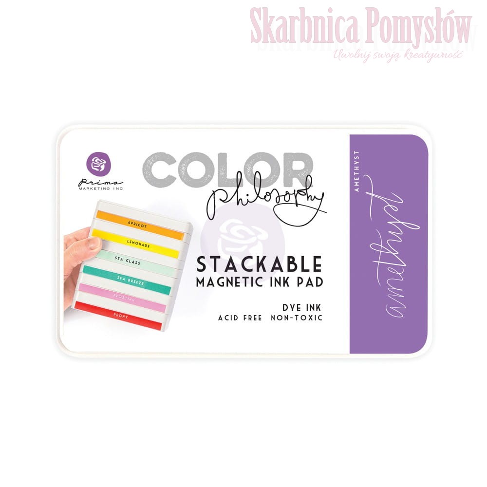 Color Philosophy to tusze w bogatej gamie kolorystycznej. Posiadają magnetyczne opakowania, dzięki czemu łatwo je przechowywać, składając jedno pudełko na drugie. Poza tym dzięki takiemu rozwiązaniu nie ma problemu z samoistnym otwieraniem się pudełka i wysychaniem tuszu. Tusze reagują na kontakt z wodą. Rozmywają się i mieszają ze sobą tworząc idealne przejścia z efektem akwareli. Bardzo dobre do kolorowania, tuszowania brzegów i odbijania stempli. Poduszka nasączona tuszem przy właściwym dociśnięciu do niej wieczka odbija odpowiednią ilość pigmentu na przykrywce umożliwiając w prosty sposób użycie tuszu do kolorowania.