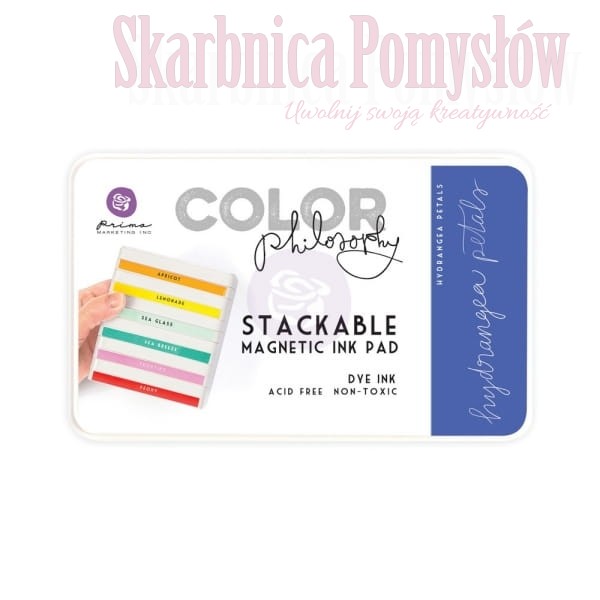 Color Philosophy to tusze w bogatej gamie kolorystycznej. Posiadają magnetyczne opakowania, dzięki czemu łatwo je przechowywać, składając jedno pudełko na drugie. Poza tym dzięki takiemu rozwiązaniu nie ma problemu z samoistnym otwieraniem się pudełka i wysychaniem tuszu. Tusze reagują na kontakt z wodą. Rozmywają się i mieszają ze sobą tworząc idealne przejścia z efektem akwareli. Bardzo dobre do kolorowania, tuszowania brzegów i odbijania stempli. Poduszka nasączona tuszem przy właściwym dociśnięciu do niej wieczka odbija odpowiednią ilość pigmentu na przykrywce umożliwiając w prosty sposób użycie tuszu do kolorowania.