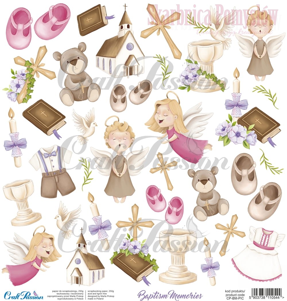 Craft Passion Baptism Memories - elementy do wycinania na chrzest - papier scrapbookingowy 30,5x30,5cm