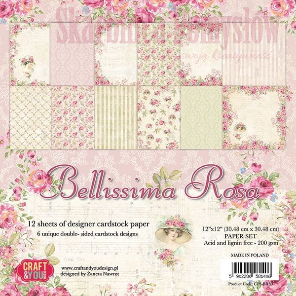 Craft&You Design Zestaw 12 dwustronnych papierów 30,5x30,5 Bellissima Rosa