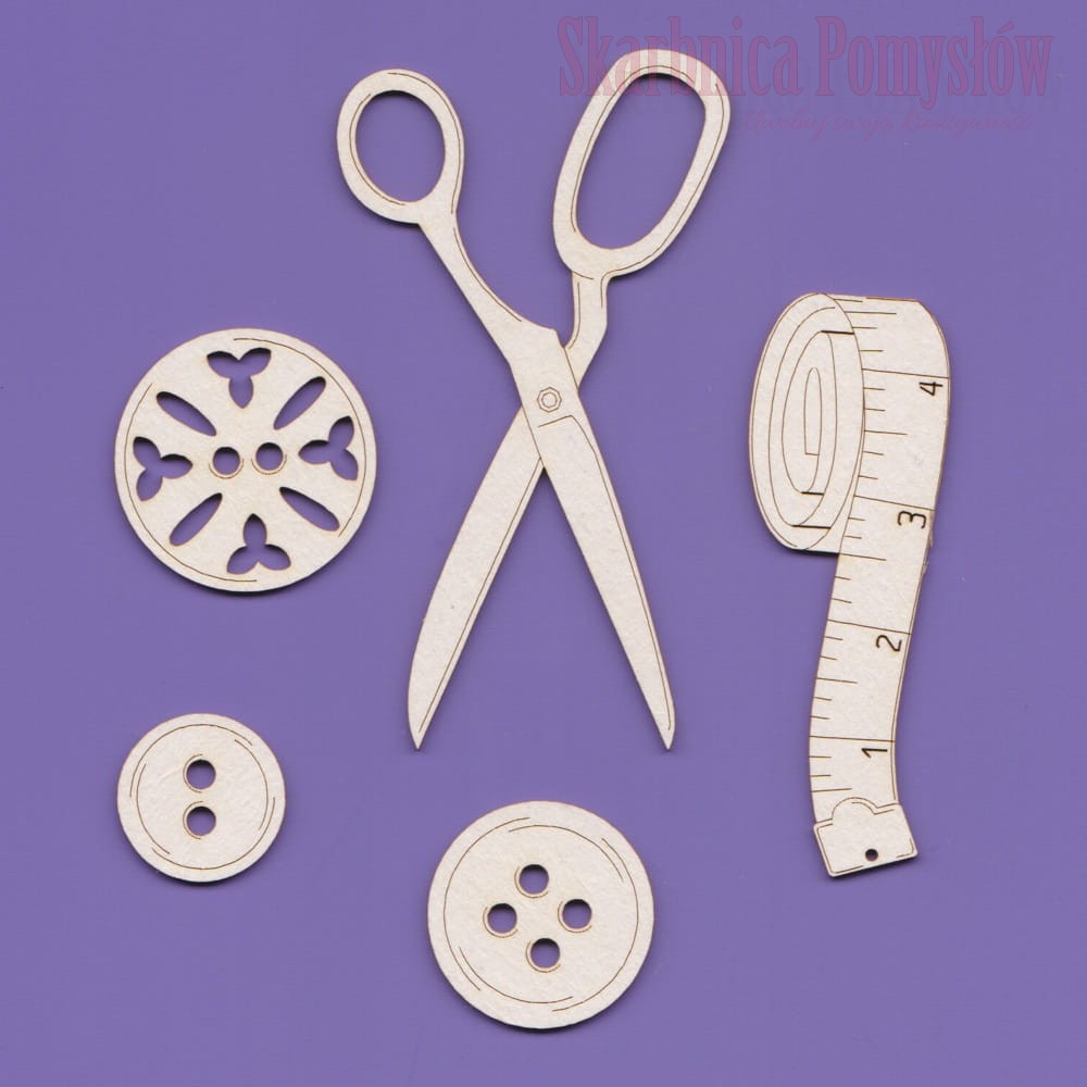 Crafty Moly 073 TEKTURKA - ZESTAW - NOŻYCZKI, MIARA, GUZIKI