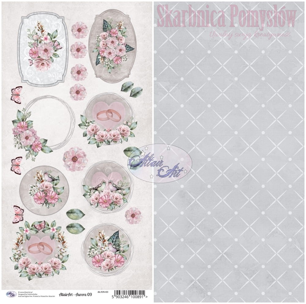 Dwustronny papier do scrapbookingu z elementami do wycinania Aurora 09 - AltairArt