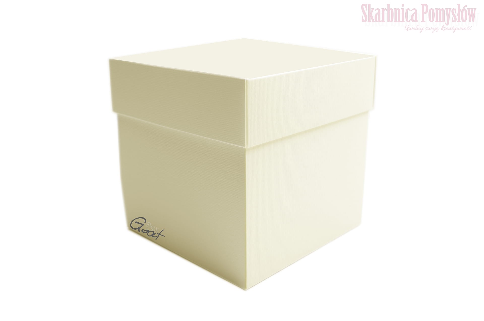 Pudełko wybuchające - Exploding Box - ecru z fakturą, delikatne prążki, z grubego, eleganckiego kartonu o gramaturze 300 gsm. 10x10x10 cm