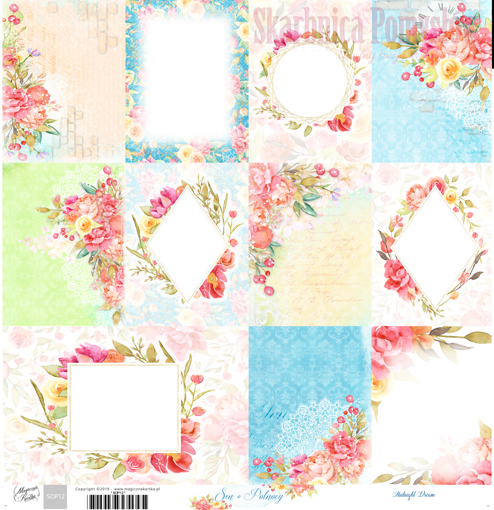 Kartka do scrapbookingu 30x30, Sen o Północy 12, Magiczna Kartka
