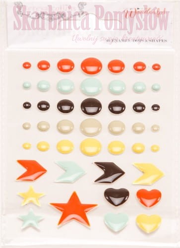 Samoprzylepne, wypukłe emaliowane kształty w różnych kolorach i rozmiarach na arkuszu 7,5 cm x 11 cm