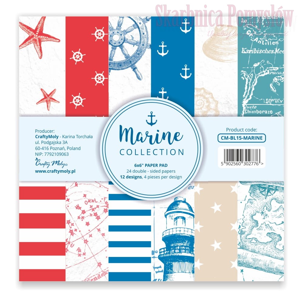 Bloczek dwustronnych papierów z kolekcji CraftyMoly - Marine