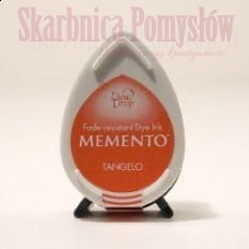 Poduszka z tuszem Dew Drop Memento. Kształt kropli umożliwia precyzyjne nakładanie tuszu. Obudowa jest tak skonstruowana, że tusz może być przechowywany zarówno w pozycji pionowej jak i poziomej. Tusz wodny, szybkoschnący, nieblaknący.