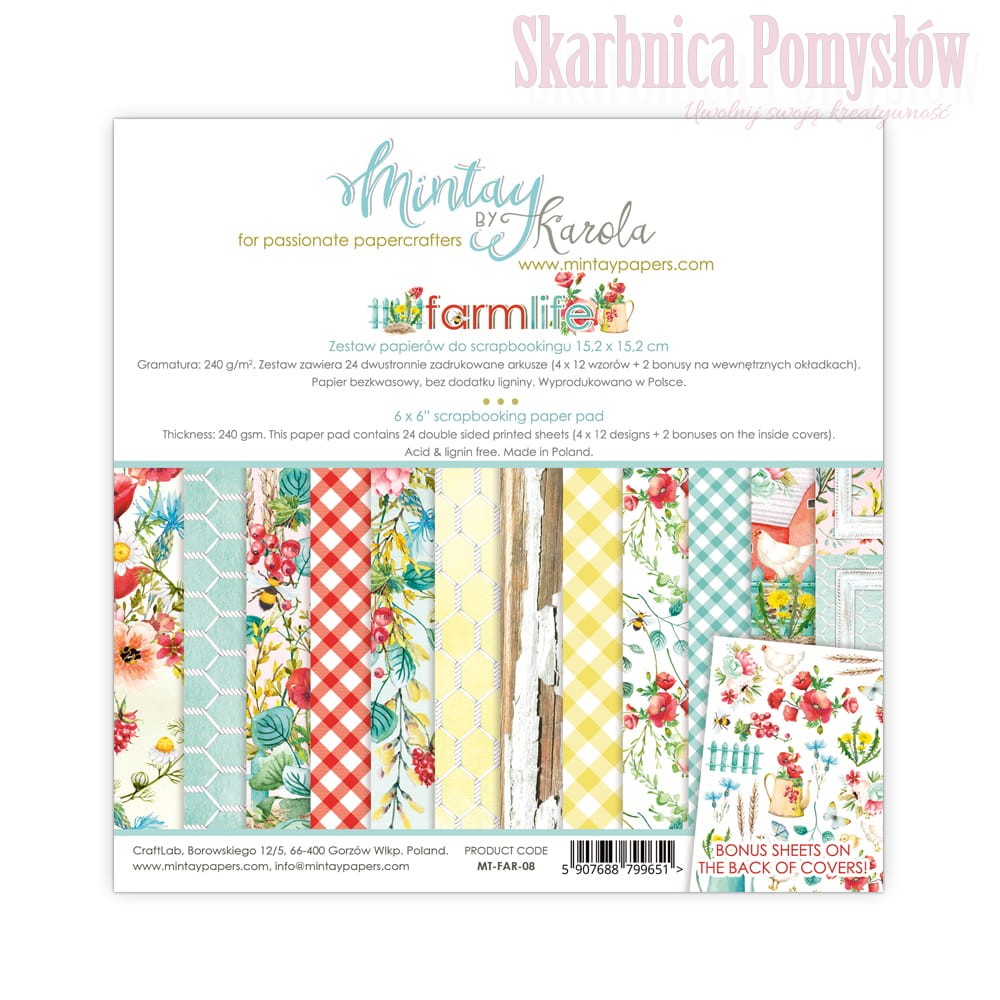 Papier ozdobny i dekoracyjny wykorzystywany technice scrapbooking i cardmaking (Rękodzieło artystyczne papierowe). Papiery do scrapbookingu firmy Mintay Papers są dziełem znanej projektantki Karoli Witczak, instruktorki oraz konsultantki w branży craft.