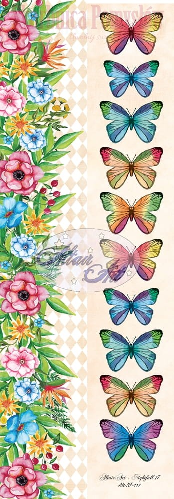 Papier do scrapbookingu - Sunrise - pasek z tęczowymi motylami - AltairArt