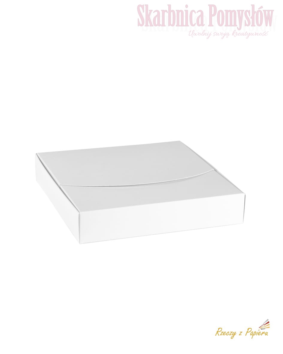 Pudełko w rozmiarze 16x16x3 cm wykonane z papieru o gramaturze 300gm2. Składa się z jednej części (wymaga klejenia) wszystkie krawędzie są bigowane co ułatwia składanie. Idealnie nadaje się do zapakowania ręcznie zdobionych kartek okolicznościowych, zaproszeń, podziekowań jak również biżuterii lub słodkości. Pudełko nadaje się do zdobienia różnymi materiałami: mediami, papierami do scrapbookingu itp.