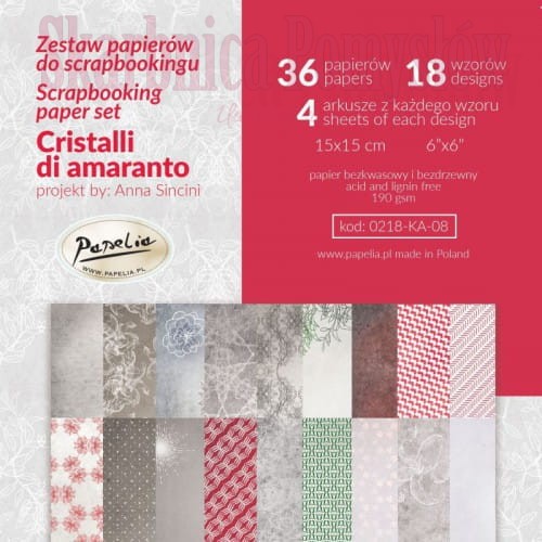 Papelia - KRYSZTAŁY AMARANTU zestaw papierów do scrapbookingu 15x15 cm