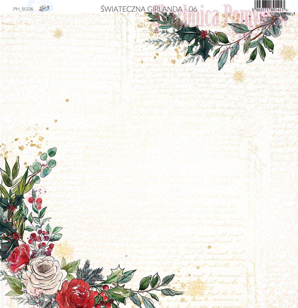 Dwustronny papier do scrapbookingu z kolekcji "Świąteczna girlanda". Arkusz o wymiarach 30,5x30,5 cm i gramaturze 250 g/m2. Bezkwasowy i bezdrzewny.