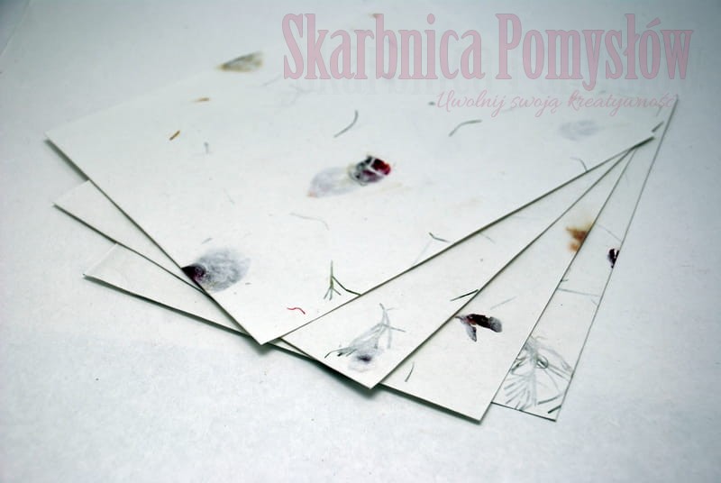 1 arkusz papieru czerpanego sprowadzanego z Indii o gramaturze 150 gsm, w kolorze białym, inkrustowanego płatkami róży.