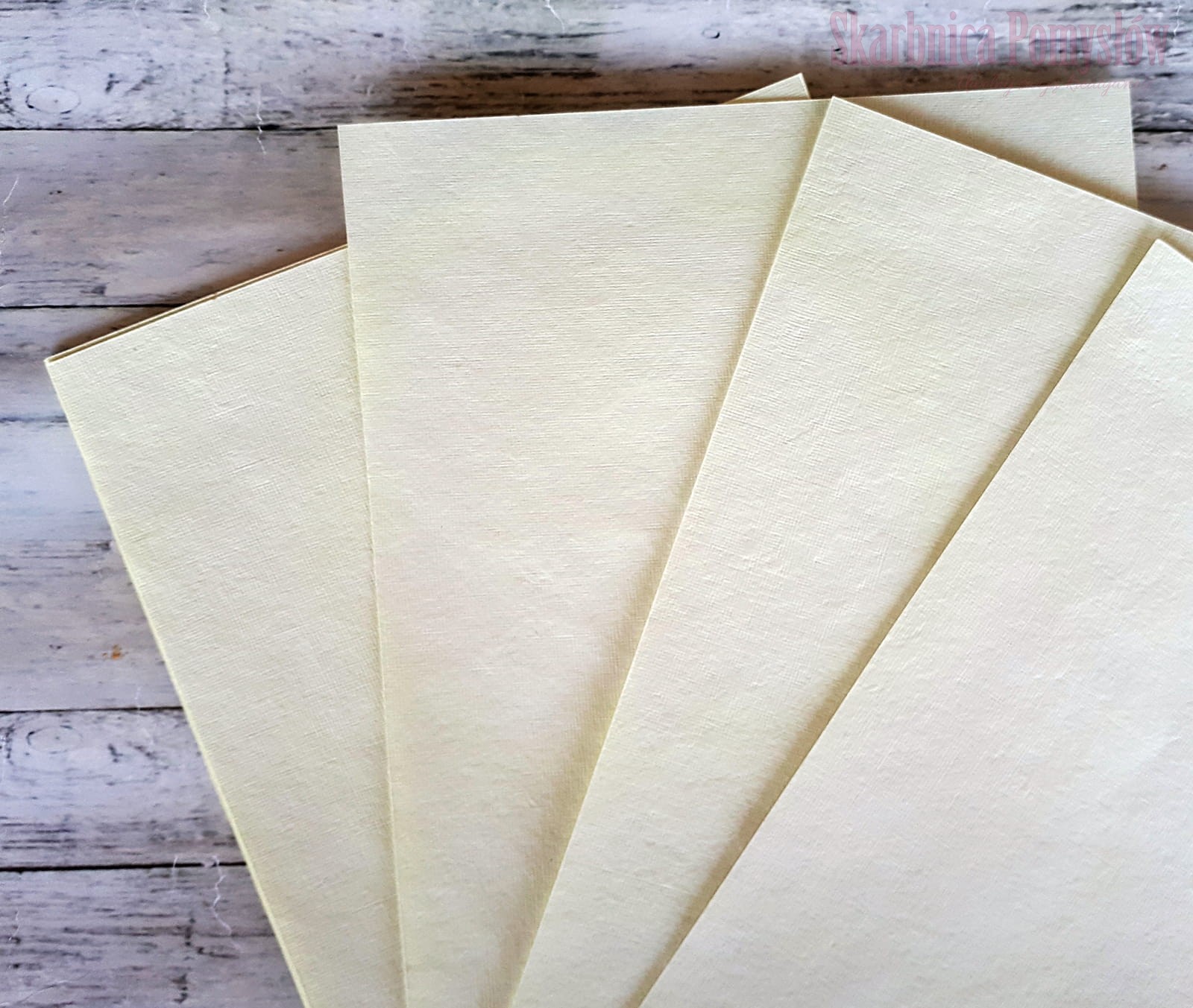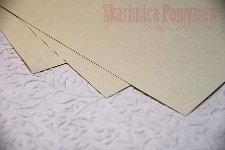 Arkusz papieru czerpanego sprowadzanego z Indii o gramaturze 260 gsm, w kolorze ecru.
