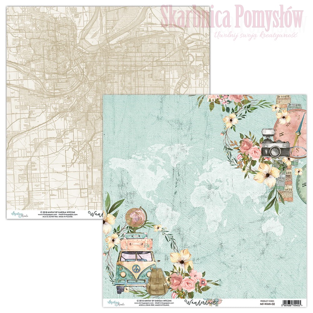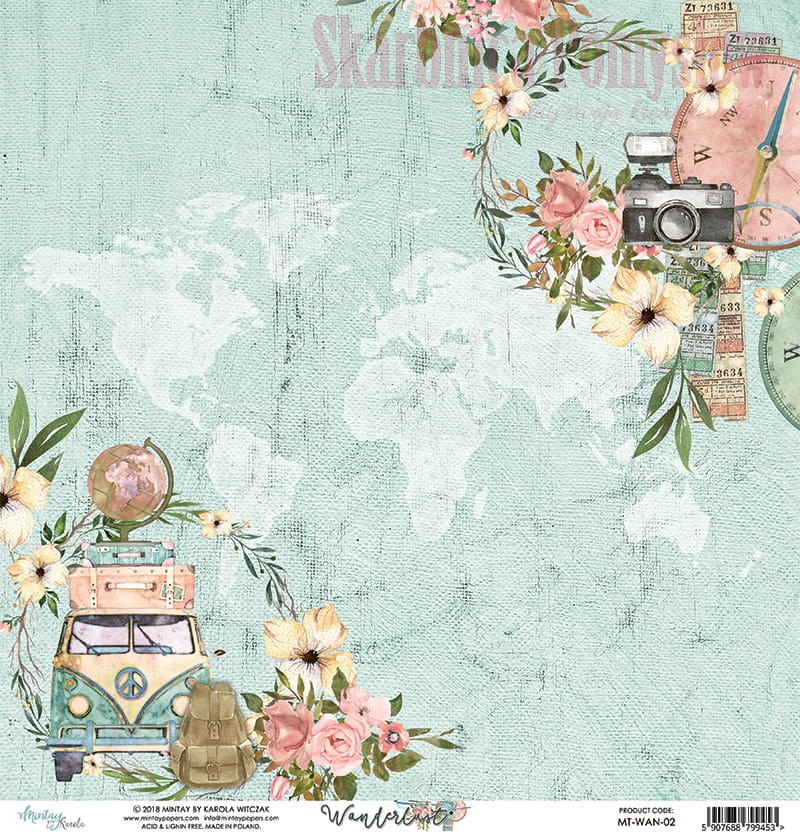 Papier do scrapbookingu 30x30 Wanderlust 02 - Mintay Papers -