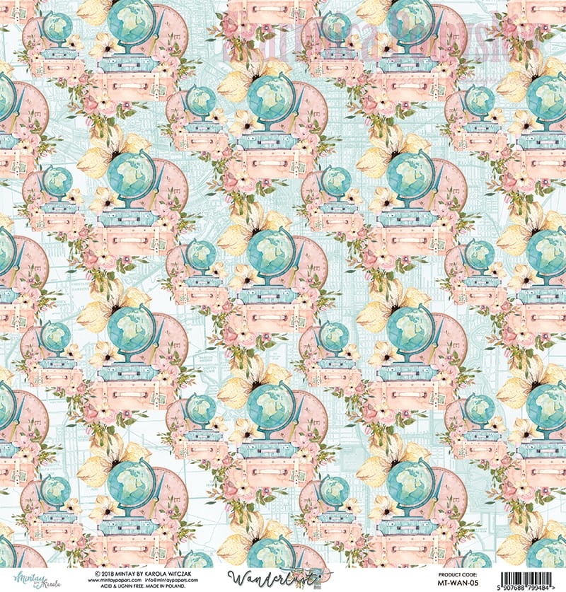 Papier do scrapbookingu 30x30 Wanderlust 05 - Mintay Papers -