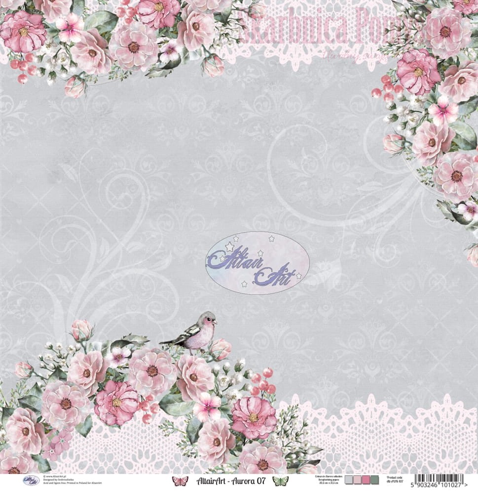 Dwustronny papier do scrapbookingu z kolekcji AltairArt - Aurora o wymiarach 15x15 cm i gramaturze 250 g. Wydruk matowy, offsetowy na papierze wysokiej jakości.