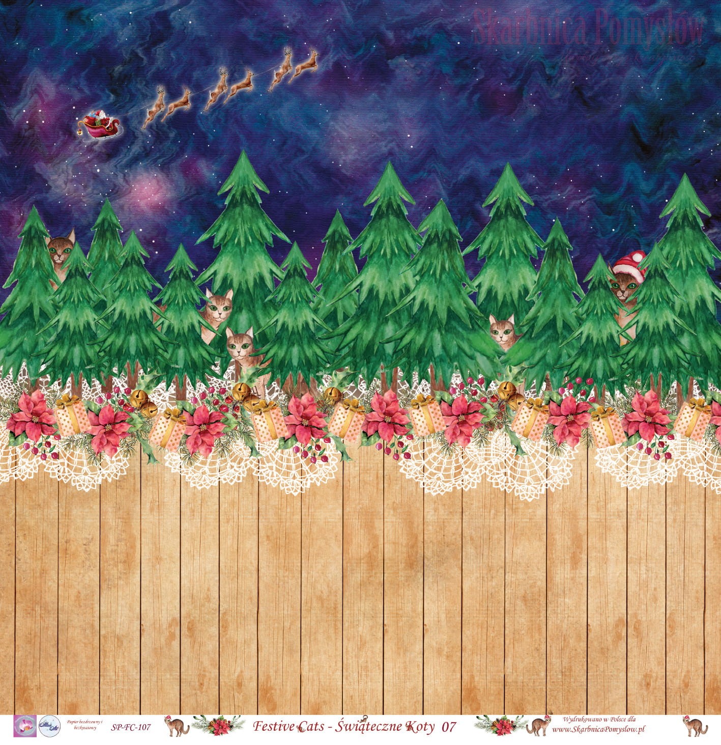 Papier do scrapbookingu - Festive cats || Świąteczne koty 07 - Skarbnica Pomysłów