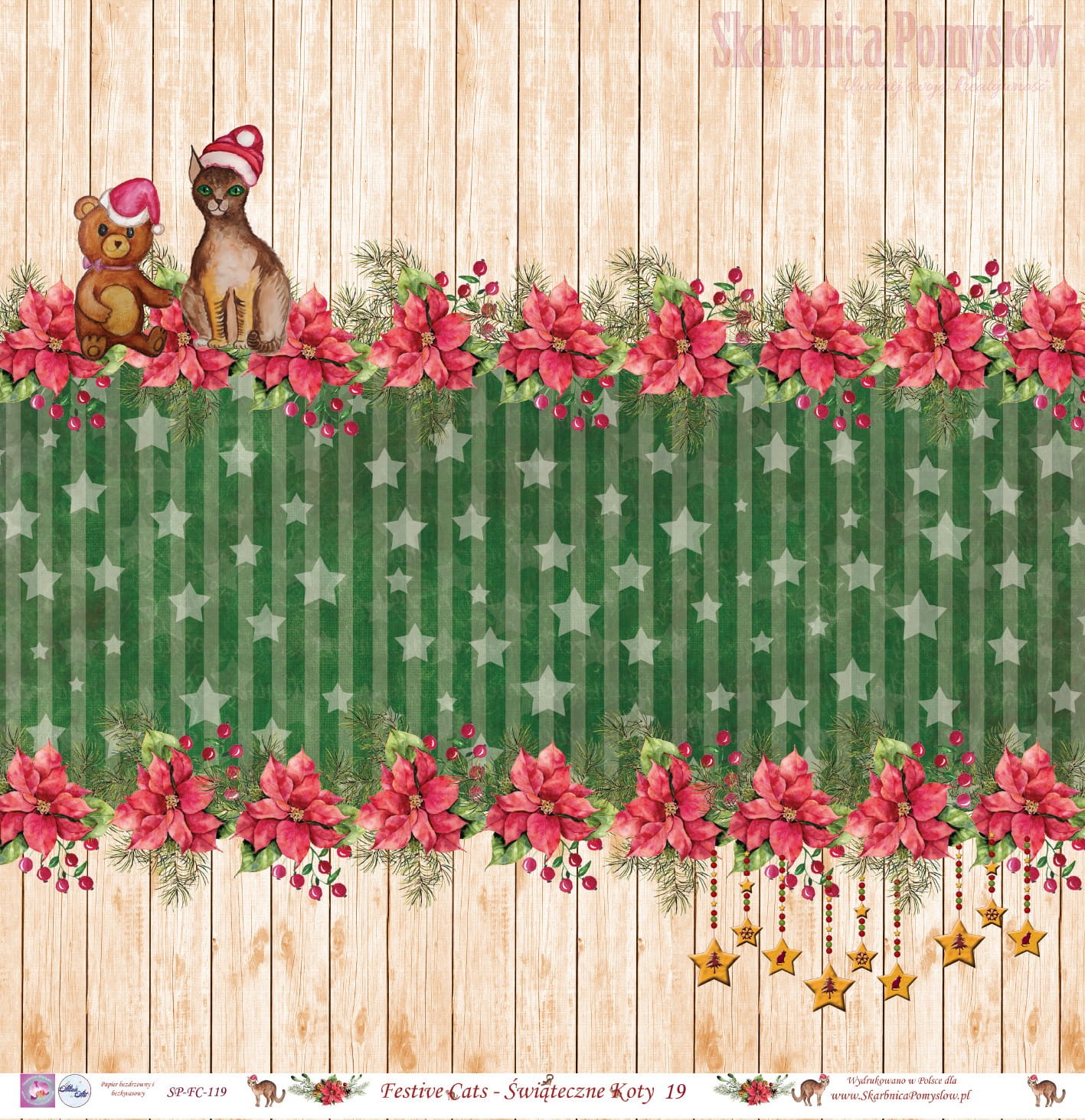 Papier do scrapbookingu - Festive cats || Świąteczne koty 19 - Skarbnica Pomysłów