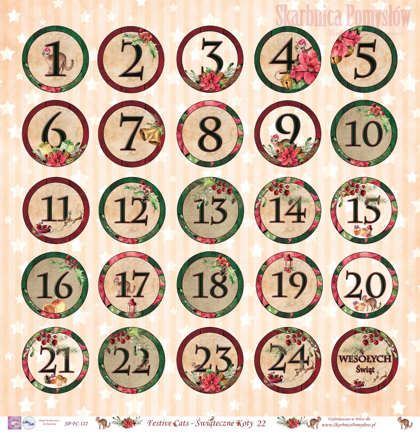 Papier do scrapbookingu - Festive cats || Świąteczne koty 22 - Skarbnica Pomysłów