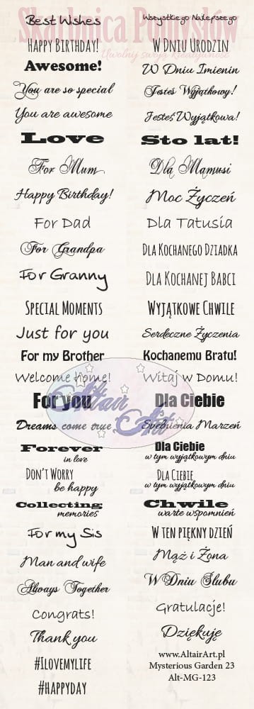 Papier do scrapbookingu Mysterious Garden 23 - Pasek 30x5 z napisami - AltairArt (minimalna ilość w zamówieniu 5 sztuk)