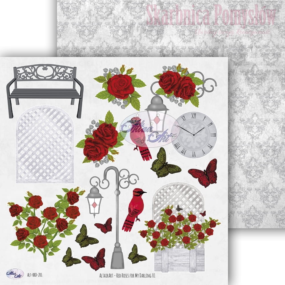 Papier do scrapbookingu Red Roses for My Darling 01 - 20x20 - elementy do wycinania - AltairArt
