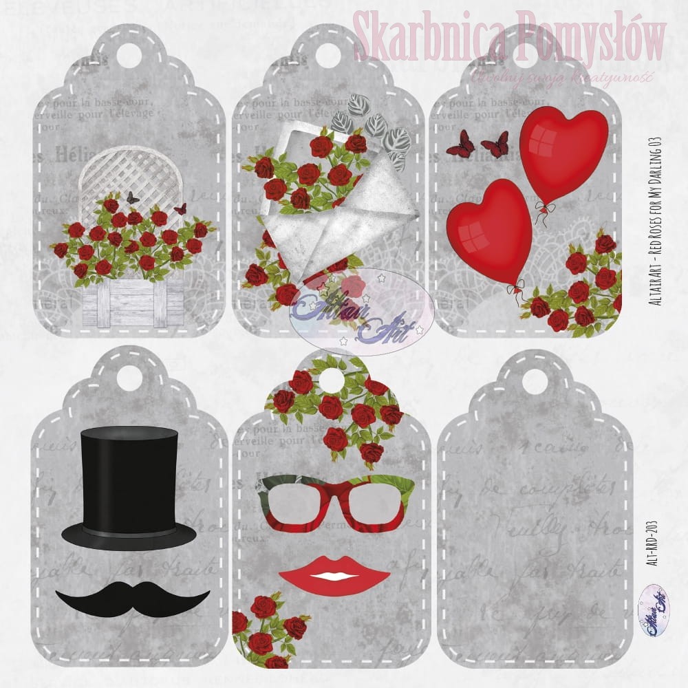 Papier do scrapbookingu Red Roses for My Darling 03 - elementy do wycinania 20x20 - AltairArt
