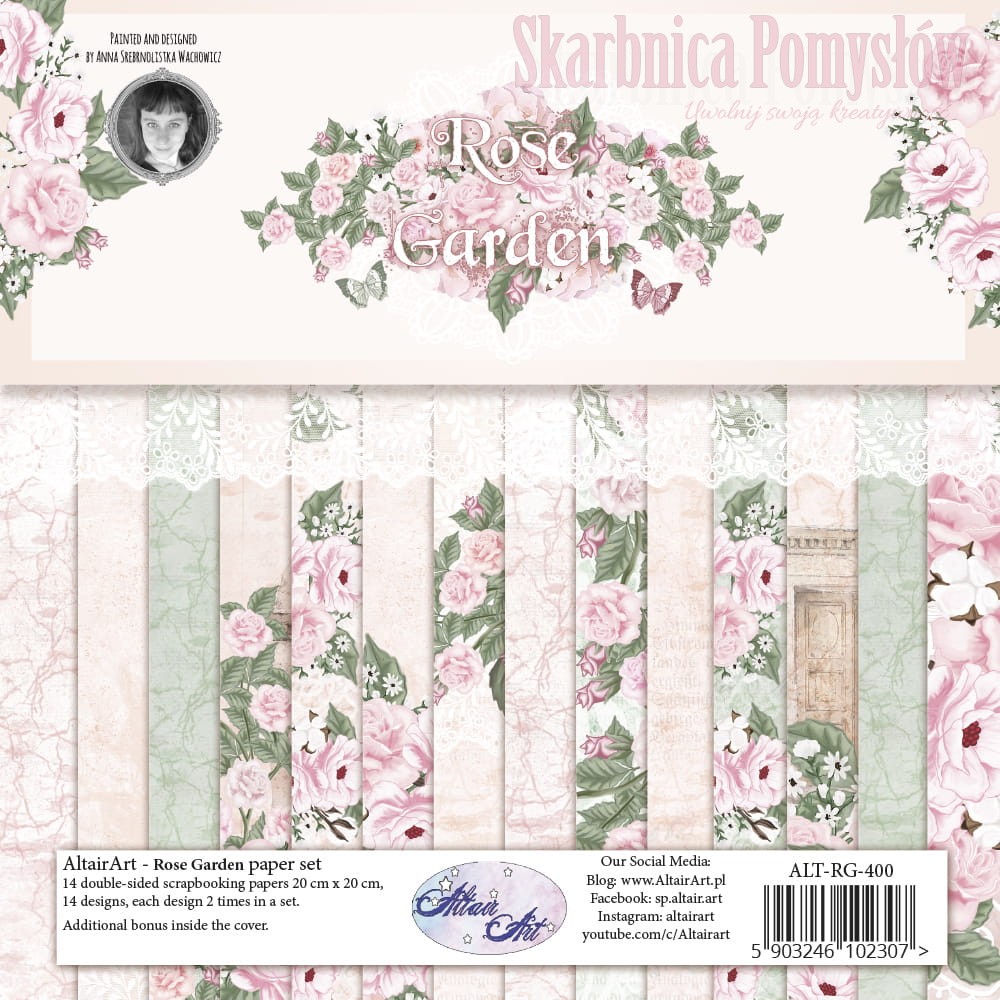 Papier do scrapbookingu Rose Garden zestaw 14 papierów 20x20 - AltairArt