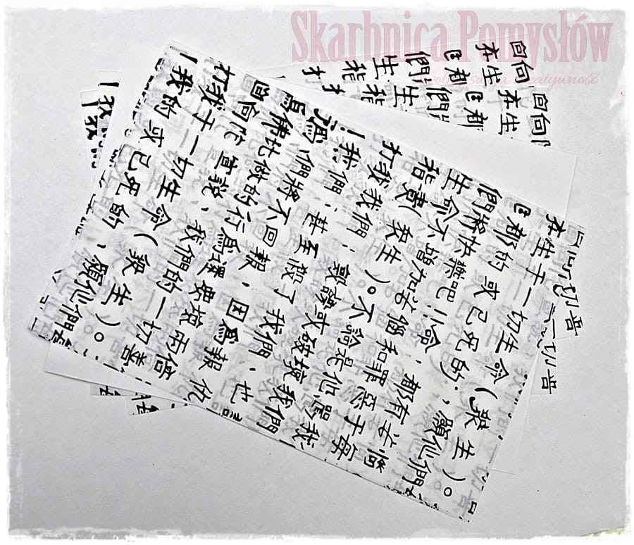Papier morwowy biały z napisami po chińsku bibułka - 5 arkuszy A4