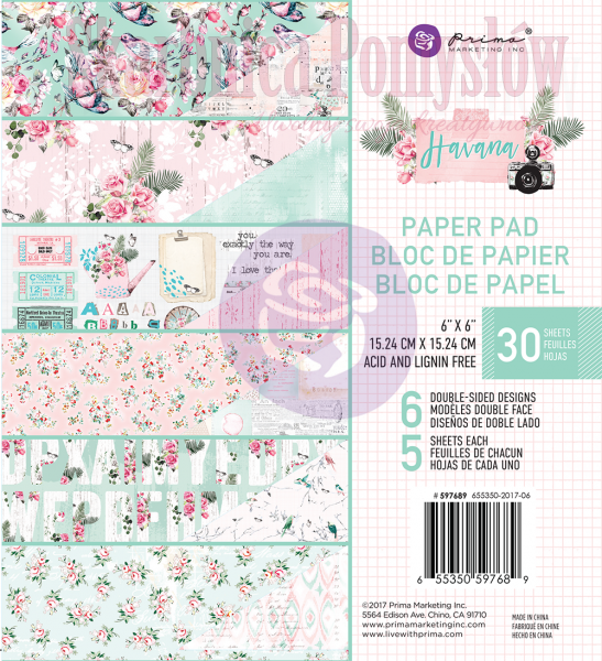 Kolekcja Havana to cudowna kobieca kolekcja pełna kolorów turkusowych, przeplatanych różem. Zestaw zawiera 30 kartek, 6 obustronnych wzorów po 5 kartek z każdego. Rozmiar papieru 15 x 15 cm.