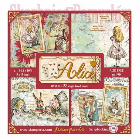 STAMPERIA ZESTAW PAPIERÓW SCRAP. 30x30cm/1str 22szt ALICE GOLD