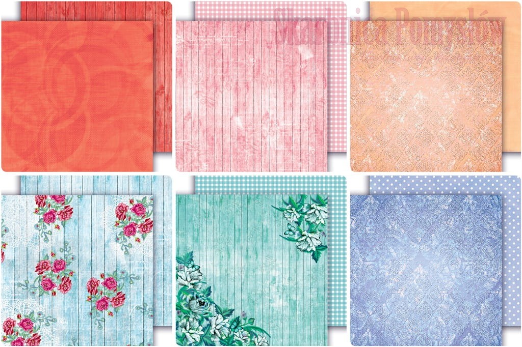 Bloczek papierów o wymiarach 15 cm x 15 cm, gramatura 240 g. 24 dwustronne arkusze, po 4 egzemplarze każdego ze wzorów.