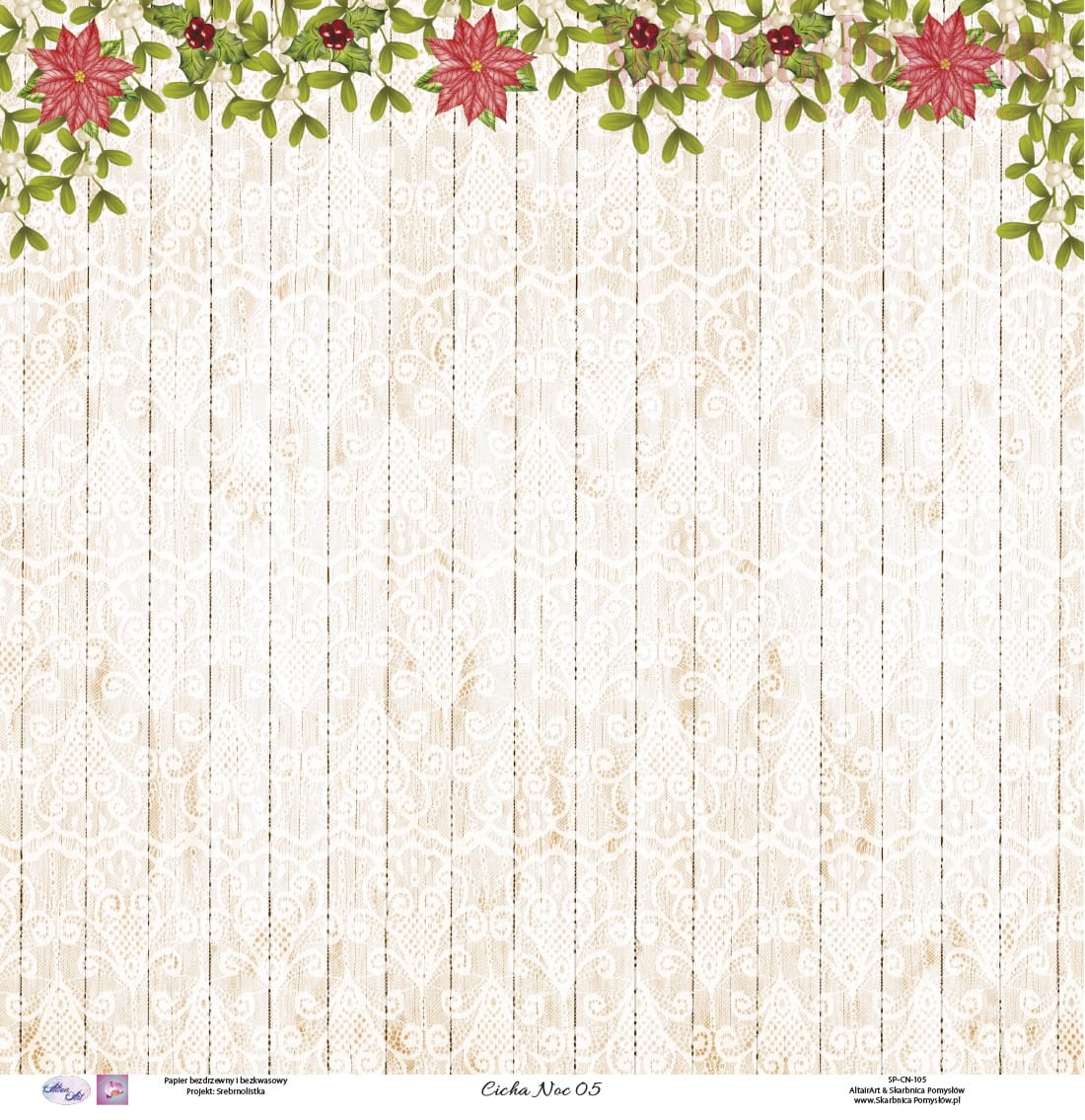 Świąteczny Papier do scrapbookingu Cicha Noc 05 - Skarbnica Pomysłów