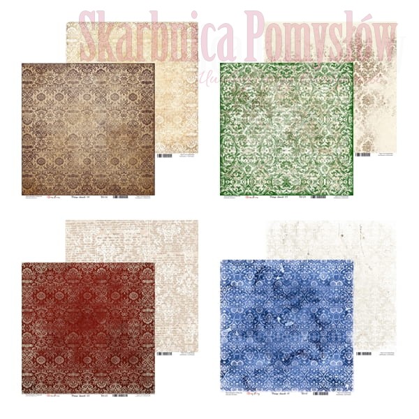 Zestaw 8 dwustronnych papierów do scrapbookingu z kolekcji "Vintage damasks" (4 arkusze po 2 szt.).