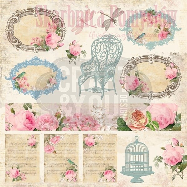 Jednostronny papier w rozmiarze 12×12 cali ( 30,48 cm x 30,48 cm) z kolekcji Vintage Time z elementami do samodzielnego wycinania - Craft&You Design.