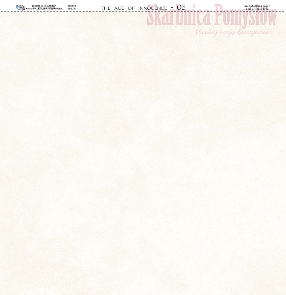 Wiek niewinności to jedna z najbardziej znanych kolekcji Galerii Papieru. Papier jest po prostu stworzony do prac komunijnych, ślubnych. Idealnie nadaje się do zaproszeń, kartek okolicznościowych. Delikatny i elegancki wzór oraz stonowana kolorystyka sprawiają, iż jest on jednym z najchętniej wybieranych produktów w tej kategorii.