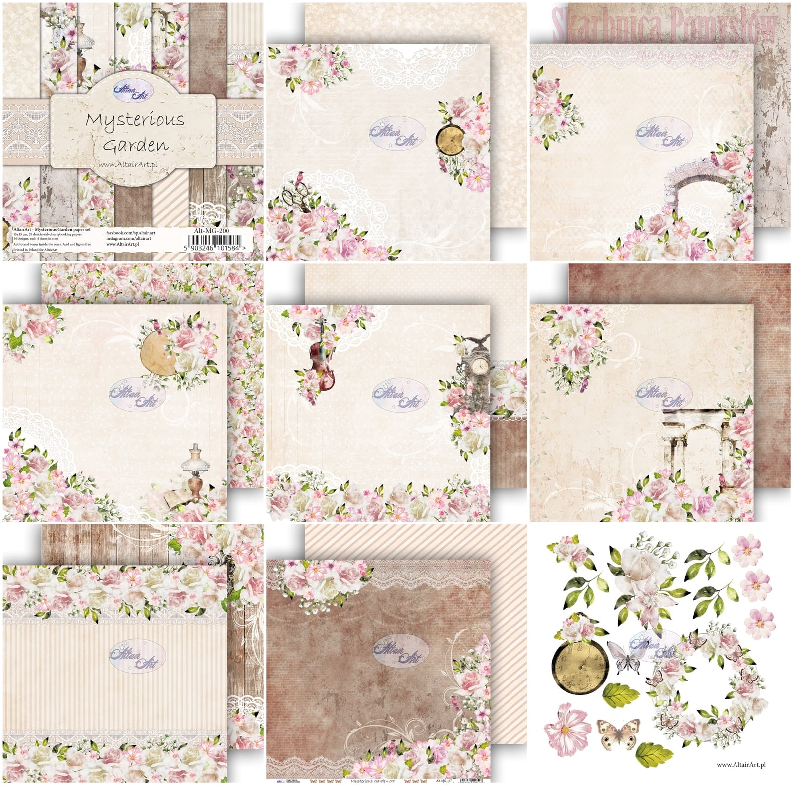 Zestaw 28 dwustronnych papierów do scrapbookingu Mysterious Garden - 15x15 - AltairArt