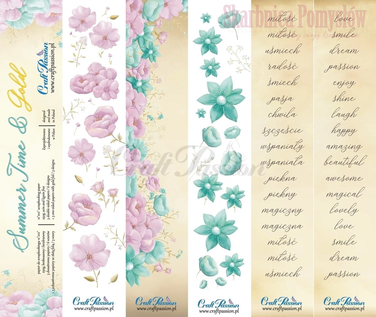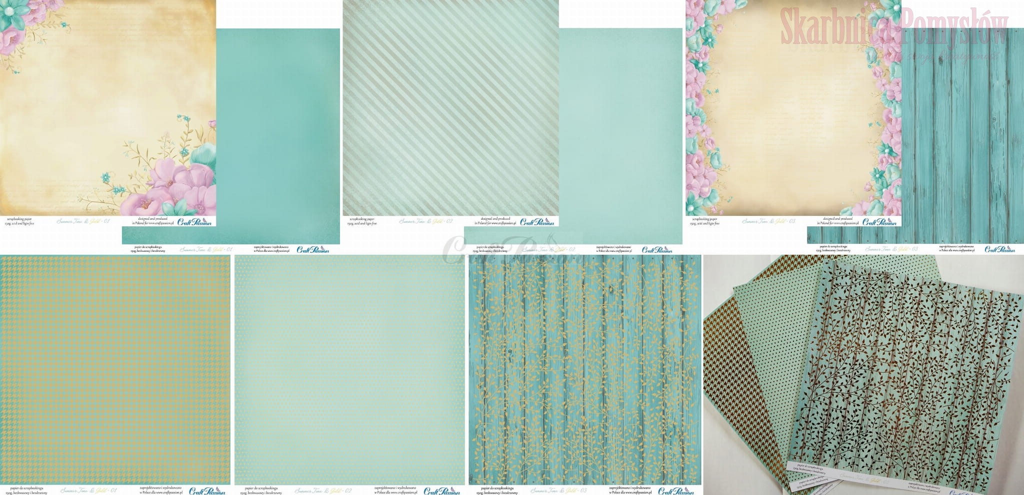 Zestaw papierów do scrapbookingu - Summer Time & Gold 30x30 - Craft Passion