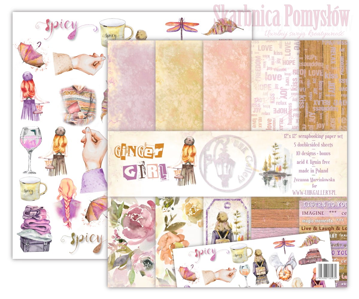 Zzestaw 5 papierów do scrapbookingu Ginger Girl - 30x30 - UHK Gallery
